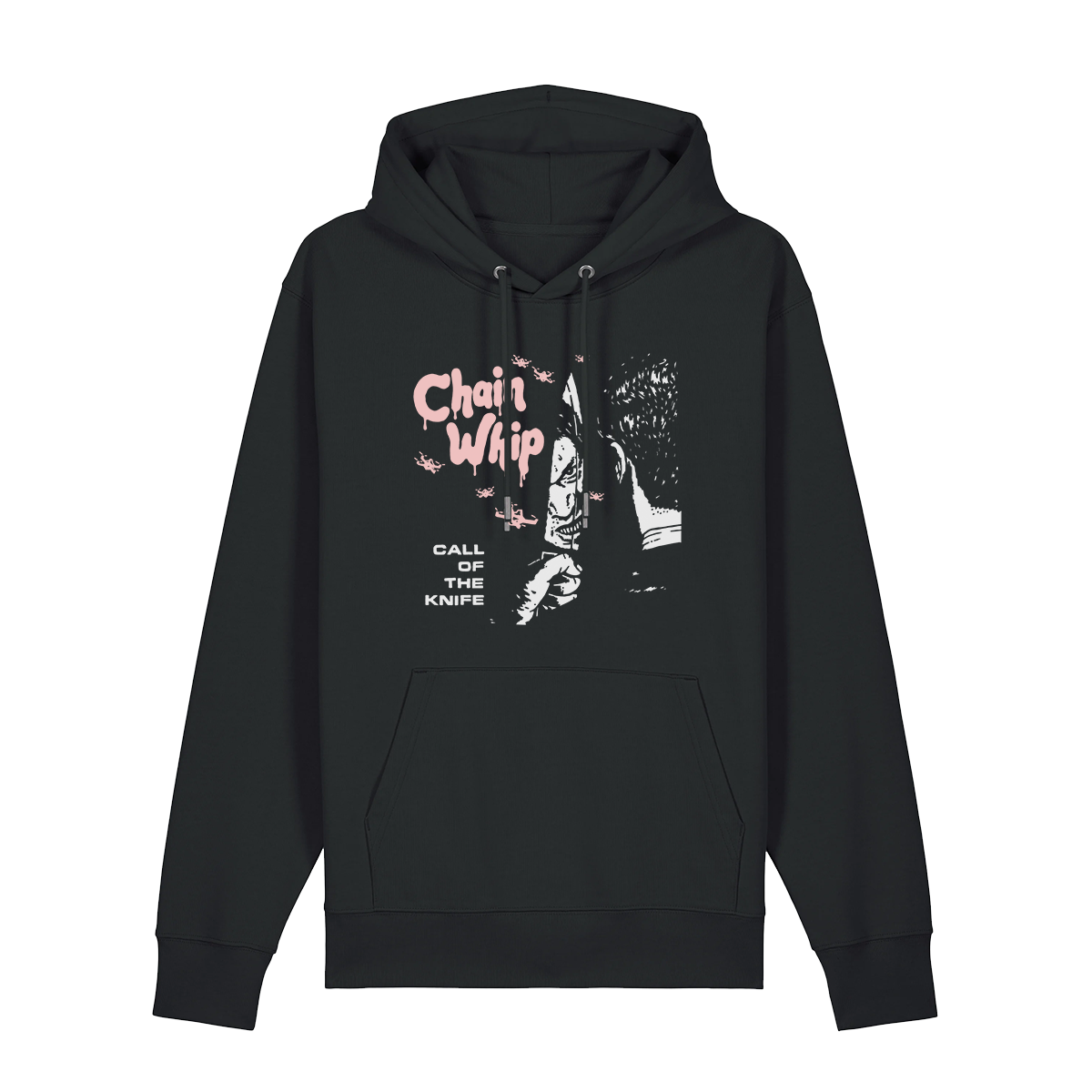 CHAIN WHIP – Call Of The Knife black hoodie (white/pink print)