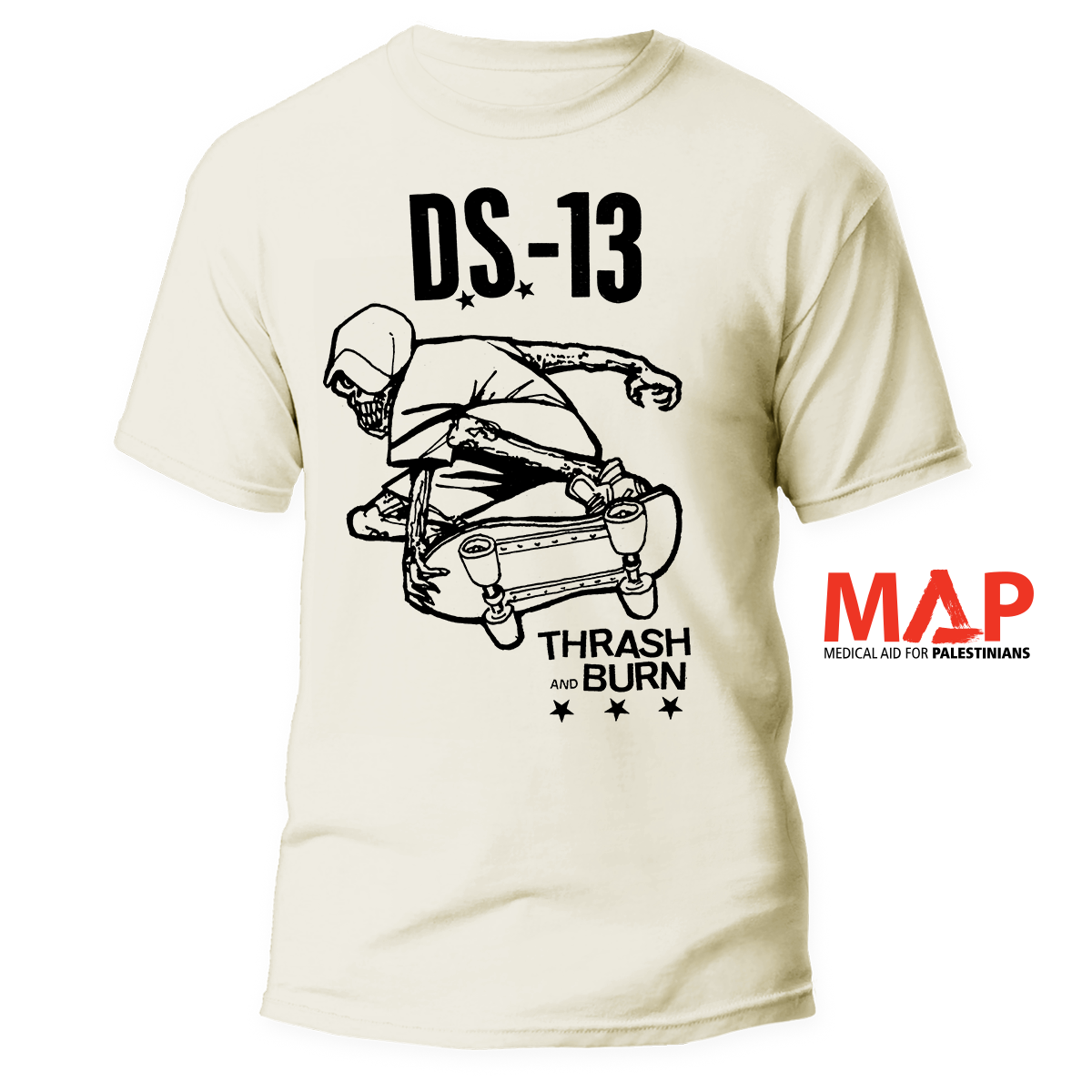 DS-13 – Thrash And Burn natural raw t-shirt (black print)