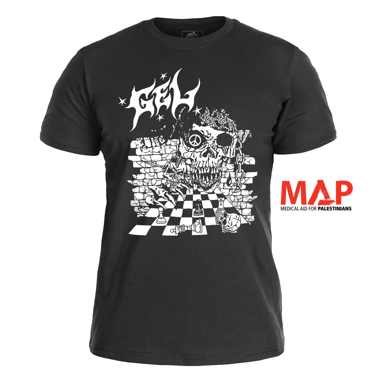 From each T-shirt, 3–5 € is donated to Medical Aid for Palestinians or Gaza Mutual Aid if band agree to that. We publish donatations on instagram stories when there are sales at that month. Please follow us at warbad instagram for updates, donations and info about your delivery status