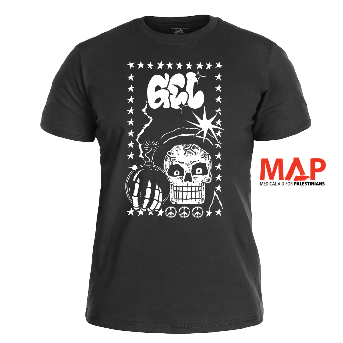 From each T-shirt, 3–5 € is donated to Medical Aid for Palestinians or Gaza Mutual Aid if band agree to that. We publish donatations on instagram stories when there are sales at that month. Please follow us at  warbad instagram for updates, donations and info about your delivery status