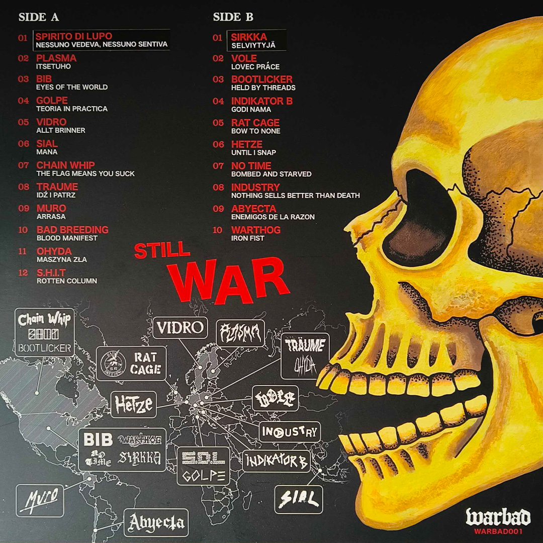22 bands from around the world: SPIRITO DI LUPO, PLASMA, BIB, GOLPE, VIDRO, SIAL, CHAIN WHIP, TRAUME (unreleased song), MURO, BAD BREEDING, OHYDA, S.H.I.T., SIRKKA, VOLE, BOOTLICKER, INDIKATOR B, RAT CAGE, HETZE, NO TIME (unreleased song), INDUSTRY, ABYECTA, WARTHOG (unreleased song). 24 booklet page inside. Cover art by Alex Heir.